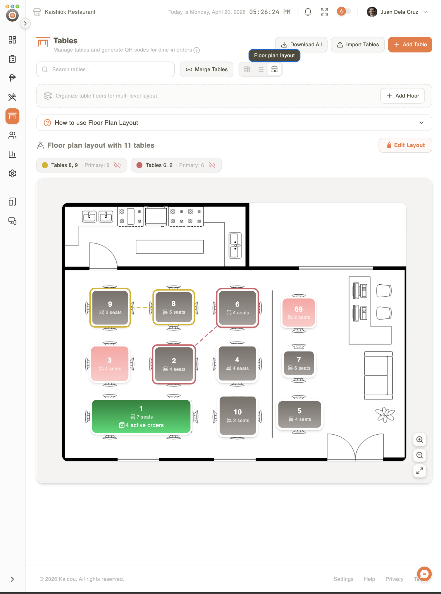 Drag tables on a canvas of your real floor. Generate & bulk-print all QRs.